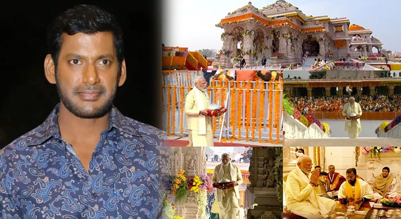 அயோத்தியில் ராமர் கோவில் கும்பாபிஷேகம் நடைபெற்ற நிலையில், பிரதமர் மோடிக்கு நடிகர் விஷால் வாழ்த்து தெரிவித்துள்ளார்.
