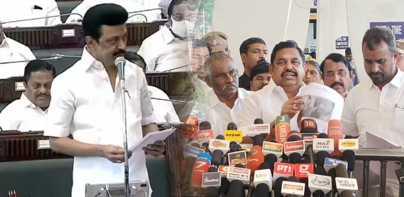 சட்டமுன்வடிவுகள் குறித்து நீதிமன்றத்தில் இருக்கும் நிலையில், ஏன் அவசர அவசரமாக சட்டமன்றத்தை கூட்டி இருக்கின்றனர்? என கேள்வி எழுப்பிய எதிர்கட்சி தலைவர் எடப்பாடி பழனிசாமி, சுயலாபத்திற்காக இந்த சட்ட முன்வடிவானது திமுக அரசால் கொண்டு வரப்பட்டு இருக்கின்றது எனவும், உச்ச நீதிமன்ற தீர்ப்பு வந்தால் இந்த கூட்டமே அவசியம் கிடையாது எனவும் குறிப்பிட்டார்.