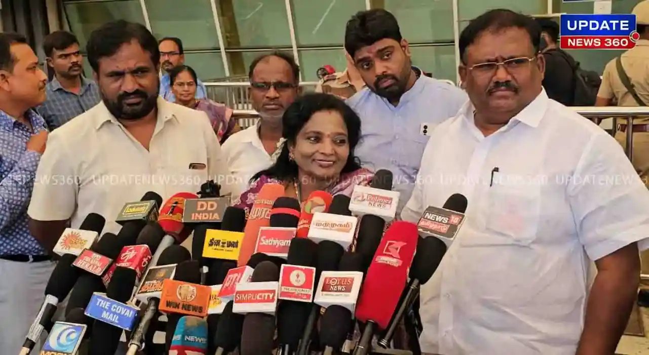 கோவை விமான நிலையத்தில் முன்னாள் ஆளுநரும், பாஜக மூத்த தலைவருமான தமிழிசை சௌந்தராஜன் செய்தியாளர்களை சந்தித்தார்.