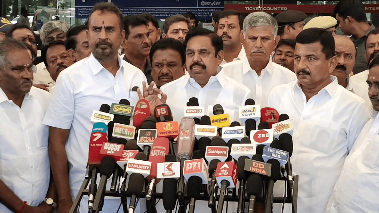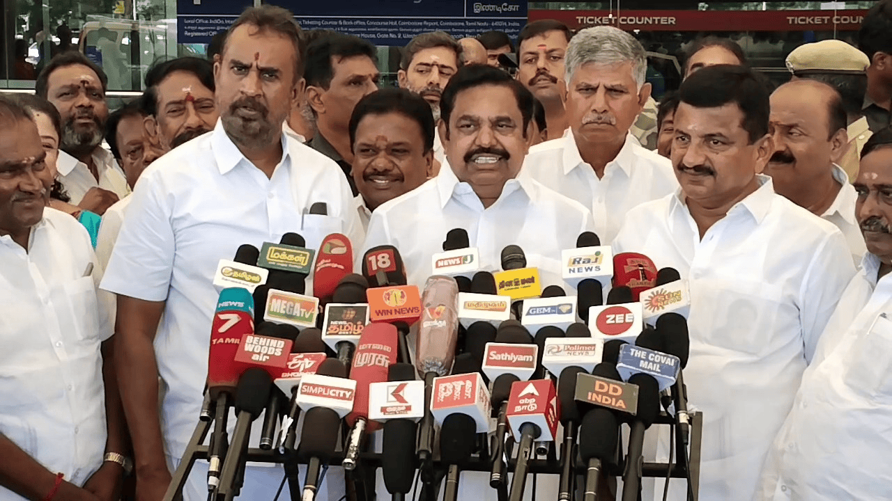 சென்னை செல்வதற்காக கோவை விமான நிலையம் வந்த அதிமுக பொதுச் செயலாளர் எடப்பாடி பழனிச்சாமி செய்தியாளர்களை சந்தித்தார்.