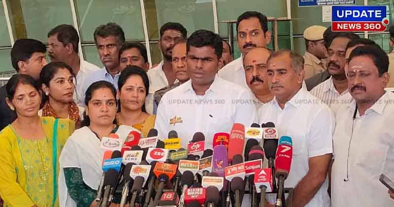 கோவை விமான நிலையத்தில் பாஜக மாநிலத் தலைவர் அண்ணாமலை செய்தியாளர்களுக்குப் பேட்டியளித்தார்.