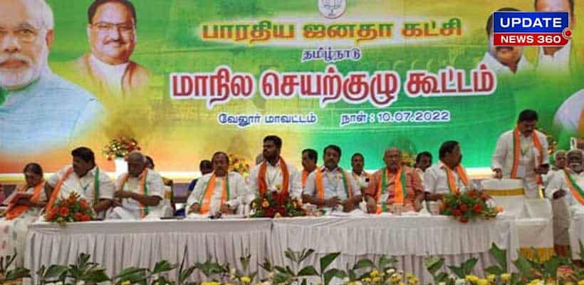 வேலூ மாவட்டம் அரப்பாக்கத்தில் உள்ள தனியார் மண்டபத்தில் மாநில தலைவர் அண்ணாமலை தலைமையில் தமிழக பா.ஜ.க.வின் மாநில செயற்குழு கூட்டம் நடைபெற்றது. இந்தக் கூட்டத்தில் மத்திய இணையமைச்சர் எல்.முருகன், தேசிய செயற்குழு உறுப்பினர்கள் பொன்.ராதாகிருஷ்ணன், எச்.ராஜா, நயினார் நாகேந்திரன் உள்ளிட்ட பல முக்கிய நிர்வாகிகள் கலந்து கொண்டனர்.