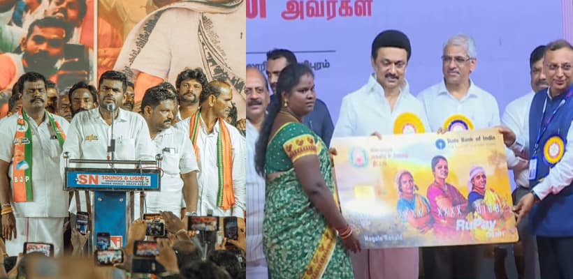 மகளிர் உரிமைத்தொகை அமாவாசை அன்று ஒரு ரூபாய் போட்டு துவக்கியுள்ளனர். உள்ளே ஒன்று வைத்துக்கொண்டு வெளியே பேசுவது. 2.25 கோடி குடும்ப அட்டை உள்ளது. ஒரு கோடியே ஆறு லட்சம் பேருக்கு மட்டும் மகளிர் உரிமைத்தொகை வழங்குகிறார்கள். திமுகவிற்கு மூன்று குறிக்கோள் தான். சாராயத்தை விற்போம். சனாதனத்தை ஒழிப்போம். தேர்தல் வரும்போது பல்டி அடிப்போம்.