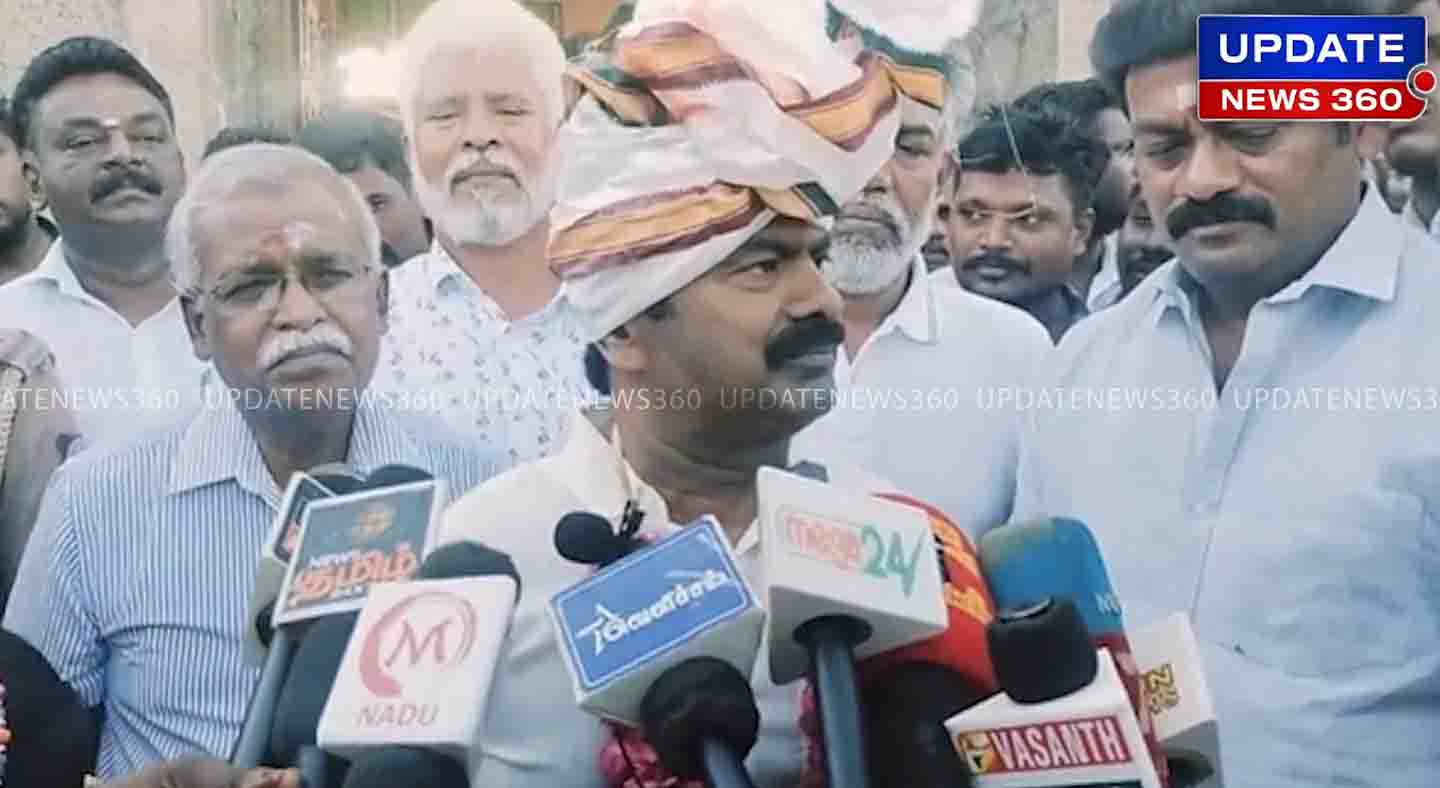 கோயில் சிவாச்சாரியார் தல புராணங்களை விளக்க பக்தி பரவசத்துடன் கேட்ட நாம் தமிழர் சீமான் அனைத்து சன்னதிகளுக்கும் சென்று பக்தி பரவசத்துடன் சாமி தரிசனம் செய்தார்.