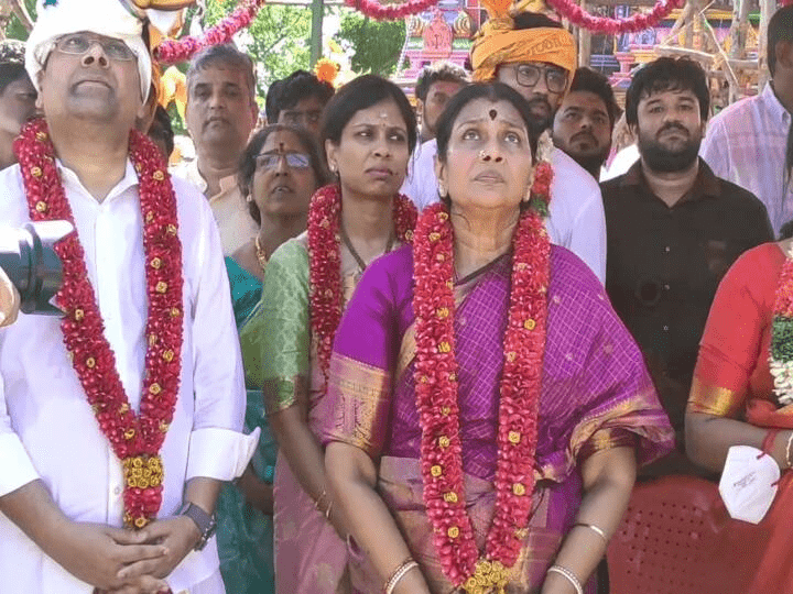மேலும் இந்த விழாவில் அமைச்சர் மெய்யநாதன், எம்எல்ஏக்கள் நிவேதா முருகன், பன்னீர்செல்வம்,கலெக்டர் லலிதா ஆகியோர் கலந்துகொண்டனர். நெட்டிசன்கள் பலரும் இந்த புகைப்படங்களை பகிர்ந்து பகுத்தறிவுக்கு வந்த சோதனை, இதுதான் சுயமரியாதை கற்றுக்கொடுத்த இயக்கமா ? என்று பல்வேறு கருத்துக்களை பதிவிட்டு வருகிறார்கள்.