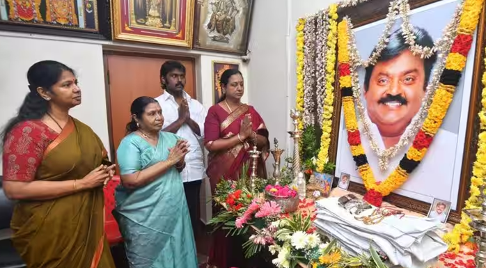 பிரேமலதாவை நேரில் சந்தித்த திமுக எம்பி கனிமொழி… வீட்டுக்கே சென்று விஜயகாந்த் மகனுக்கு ஆறுதல்!
