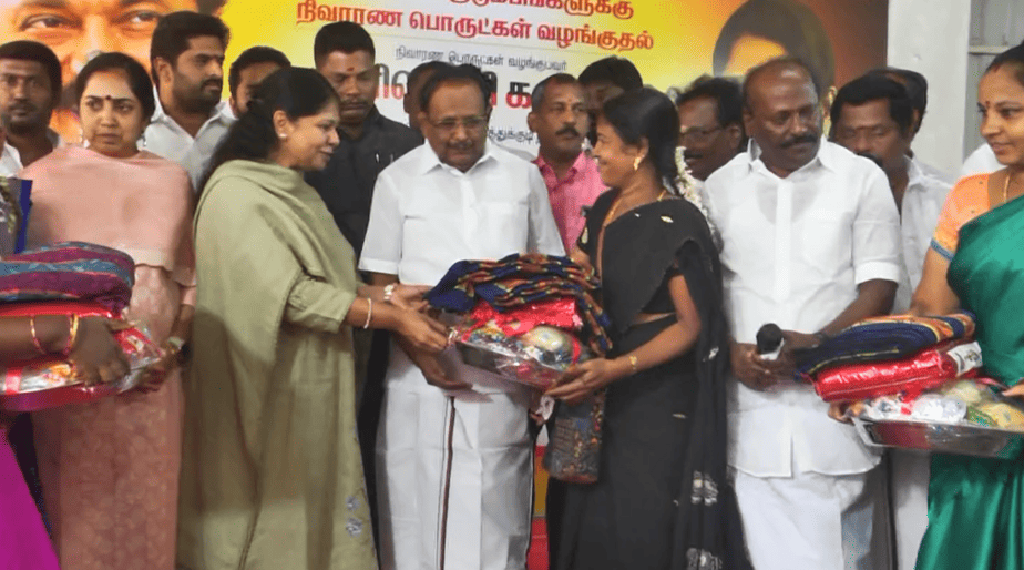 மிக்ஜாம் புயலால் பாதிக்கப்பட்ட சென்னை கேகே நகர், எம்ஜிஆர் நகர் பகுதியில் வசிக்கும் 5000 நபர்களுக்கு நிவாரண பொருட்களானது திமுக மகளிரணி சார்பில் வழங்கப்பட்டது. இந்த நிகழ்ச்சியில் நாடாளுமன்ற உறுப்பினர் கனிமொழி மற்றும் தமிழச்சி தங்கபாண்டியன் ஆகியோர் கலந்து கொண்டு பாதிக்கப்பட்டவர்களுக்கு நிவாரண பொருட்களை வழங்கினர்.