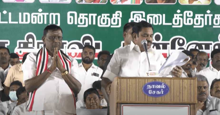 ஈரோடு கிழக்கு தொகுதி இடைத்தேர்தலில் அதிமுக கூட்டணி சார்பில் தென்னரசு போட்டியிடுகிறார். இந்த நிலையில், அதிமுக கூட்டணி கட்சிகளிடையே வேட்பாளர் அறிமுகக் கூட்டம் நடைபெற்றது. இதில், அதிமுக இடைக்கால பொதுச்செயலாளரும், எதிர்கட்சி தலைவருமான எடப்பாடி பழனிசாமி பேசினார்.