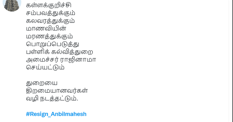 மேலும் கள்ளக்குறிச்சி சம்பவம் முதல் தற்போதைய நியமனம் வரை பள்ளிக்கல்வித்துறை சரியாக செயல்படவில்லை என்றும், இதற்கு காரணமான அமைச்சர் அன்பில் மகேஷ் பதவி விலக வேண்டும் என நெட்டிசன்கள் கருத்து தெரிவித்துள்ளனர்.