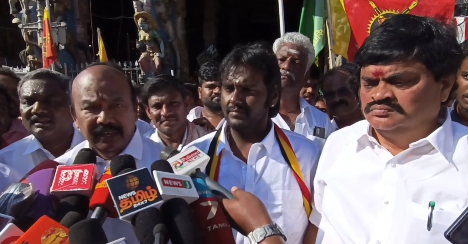 விருதுநகர் பாராளுமன்ற தொகுதியில் போட்டியிடும் தேமுதிக வேட்பாளர் விஜய் பிரபாகரனை ஆதரித்து முன்னாள் அமைச்சரும், விருதுநகர் மாவட்ட தேர்தல் பொறுப்பாளரான கேடி ராஜேந்திர பாலாஜி மற்றும் திருப்பரங்குன்றம் சட்டமன்ற உறுப்பினரும், மதுரை புறநகர் கிழக்கு மாவட்ட செயலாளர் ராஜன் செல்லப்பா ஆகியோர் இணைந்து, திருப்பரங்குன்றம் அருள்மிகு சுப்ரமணியசாமி திருக்கோவில் சாமி தரிசனம் செய்த பிறகு, கொட்டு முரசு சின்னத்தில் தீவிர வாக்கு சேகரிப்பில் ஈடுபட்டு வருகின்றனர்.