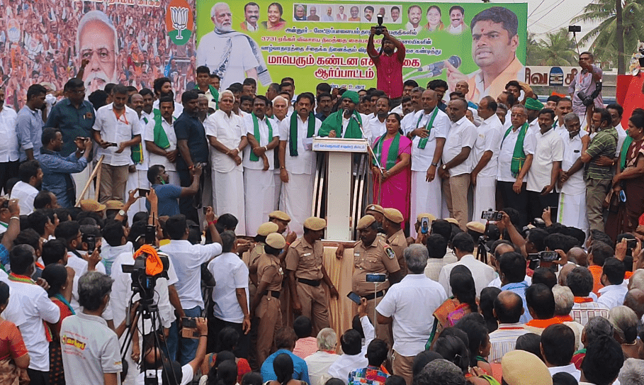 தொழில் பூங்கா அமைக்க விவசாய நிலங்களை கையகப்படுத்த எதிர்ப்பு தெரிவித்து, நமது நிலம் நமதே என்ற பெயரில் குழு அமைத்து அப்பகுதி விவசாயிகள் தொடர் போராட்டங்களில் ஈடுபட்டு வருகின்றனர். இந்நிலையில் அன்னூர் – ஓதிமலை சாலையில் பாஜக சார்பில் விவசாய நிலங்களை கையகப்படுத்த எதிர்ப்பு தெரிவித்து, பாஜக மாநிலத் தலைவர் அண்ணாமலை தலைமையில் இன்று மாலை ஆர்ப்பாட்டம் நடைபெற்றது.