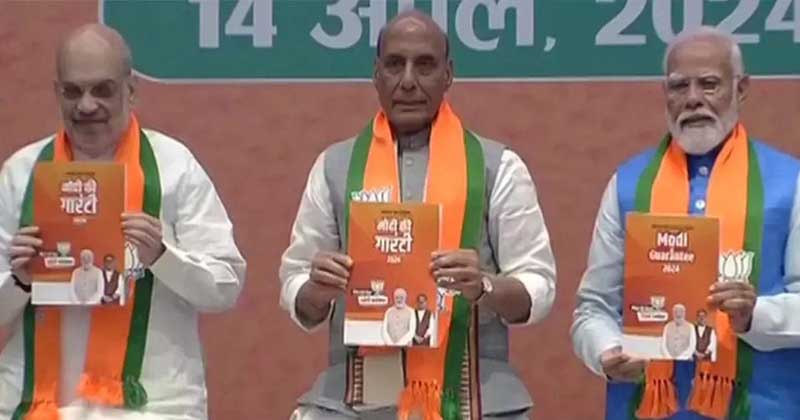 பாராளுமன்ற தேர்தலை முன்னிட்டு பா.ஜ.க. இன்று தனது தேர்தல் அறிக்கையை வெளியிட்டது. டெல்லியில் உள்ள பா.ஜ.க. தலைமை அலுவலகத்தில் தேர்தல் அறிக்கை வெளியானது. பிரதமர் மோடி, பா.ஜ.க தேசிய தலைவர் ஜேபி நட்டா, மத்திய மந்திரிகள் ராஜ்நாத்சிங், அமித்ஷா உள்ளிட்டோர் முன்னிலையில் பா.ஜ.க. தேர்தல் அறிக்கை வெளியிடப்பட்டது.