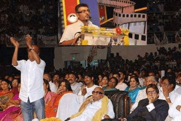 நடிகர் அஜித்தின் இந்த பேச்சை கேட்டவுடன் கருணாநிதி அருகில் அமர்ந்திருந்த நடிகர் ரஜினி உடனடியாக எழுந்து நின்று கைதட்டினார். அஜித்தின் தைரியமான இந்த பேச்சு இன்று வரை திரையுலகில் பரவலாக பேசப்படுகிறது. ஏனென்றால் இந்த அளவிற்கு எந்த முதலமைச்சர் முன்பாகவும் தைரியமான பேச்சை வேறு எந்தவொரு நடிகரும் இதுவரை வெளிப்படுத்தியது இல்லை.