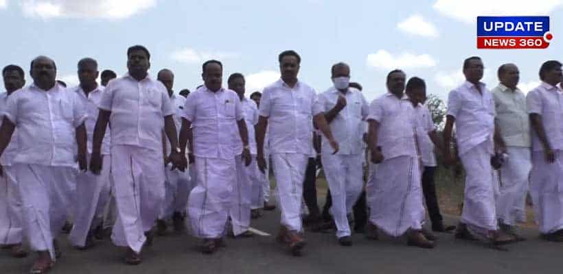 ஆனால், இந்த தகவலை அறிந்த தனியார் ஒப்பந்ததாரர் நிறுவனம் அவசரம், அவசரமாக அப்பகுதிகளில் சாலைகளை போடும் பணியில் ஈடுபட்டனர். அது குறித்தும் மாவட்ட ஆட்சியரிடம் புகார் அளிக்கப்பட்டது. ஆனால் எந்தவித நடவடிக்கையும் எடுக்கப்படாத நிலையில், அதிமுக சார்பில் முதல்வரின் தனிப்பிரிவு, தலைமை செயலாளரிடம் புகார் அளிக்கப்பட்டது.