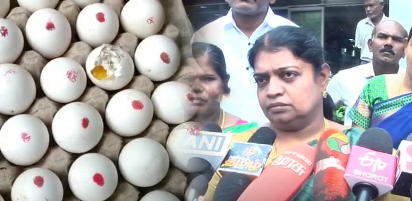 தமிழக அரசு திங்கள், புதன், வெள்ளிக் கிழமைகளில் விநியோகிக்கப்படும் முட்டைகளுக்கு ஒவ்வொரு நாளும் ஒவ்வொரு கலர் வைக்க வேண்டும் என 2006ம் ஆண்டு உத்தரவிடப்பட்டுள்ளதாக தெரிவித்த அவர், சர்ச்சைக்குரிய நாளில் கருப்பு கலர் முட்டை மீது வைக்கப்பட்டு தமிழக அரசு முத்திரை அதில் இடப்பட்டிருந்தது. அன்றைய தினம் கடும் மழை தார்ப்பாய் இல்லாமல் வாகனம் வந்துள்ளது. முட்டைகள் எல்லாம் நனைந்து கருப்பு மை ஊறி அந்த கருப்பு கலர் அனைத்து முட்டைகளிலும் இறங்கியுள்ளது.