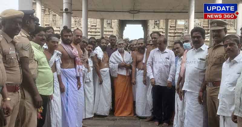இந்த ஆய்வு நாளை முதல் 2 நாட்கள் நடைபெற உள்ளது. இந்த ஆய்வுக்கும், கோவில் பொது தீட்சிதர்கள் எதிர்ப்பு தெரிவித்தனர். இந்த பரபரப்பான சூழ்நிலையில் இந்து சமய அறநிலையத்துறை அமைச்சர் சேகர்பாபு இன்று சிதம்பரம் நடராஜர் கோவிலுக்கு வந்தார்.