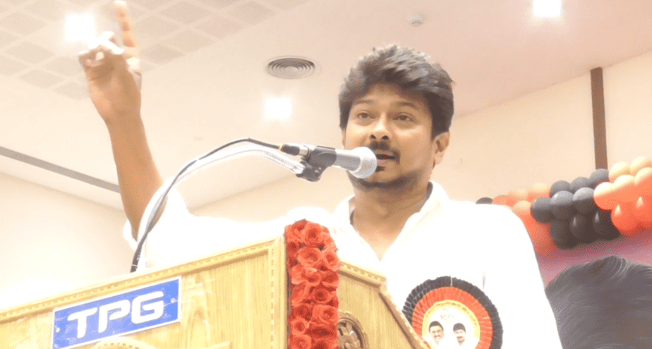 திருப்பத்தூர் மாவட்டம், திருப்பத்தூர் அடுத்த ஆதியூர் பகுதியில் உள்ள தனியார் திருமண மண்டபத்தில் திமுக மூத்த முன்னோடிகளுக்கு பொற்கிழி வழங்கும் நிகழ்ச்சி நடைபெற்றது. அந்த நிகழ்ச்சியில் அமைச்சர் உதயநிதி கலந்து கொண்டு பேசினார்.