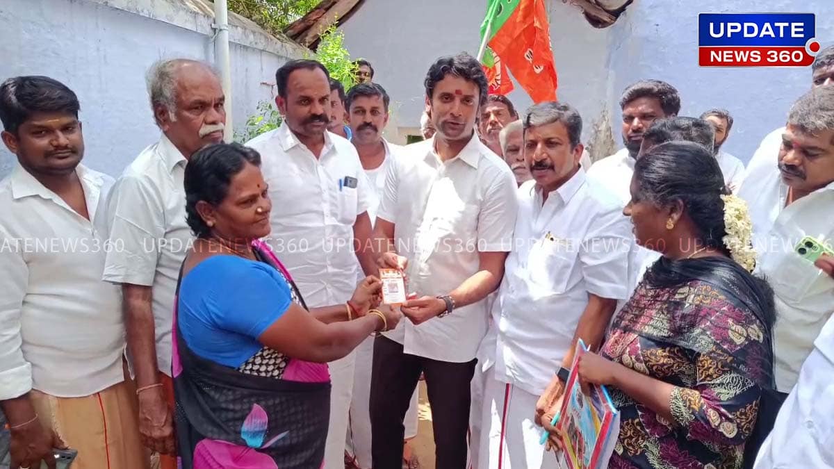 அப்போது வீடு வீடாக சென்று புதிய உறுப்பினர்களை பாரதிய ஜனதா கட்சியில் இணைத்து அவர்களுக்கு அட்டைகளை வழங்கினார்.