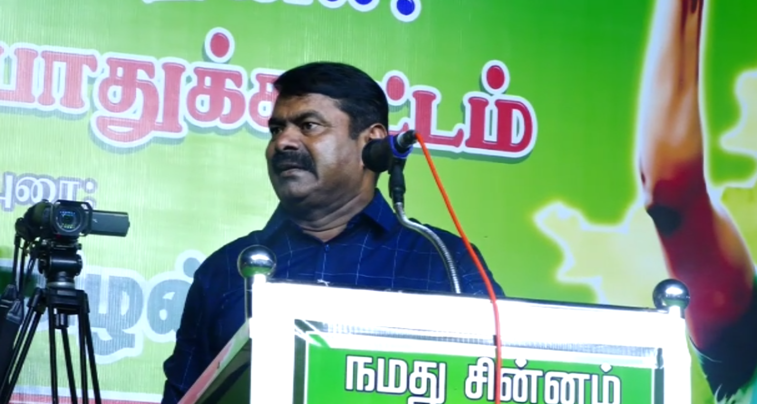 விருதுநகர் தேசபந்து மைதானத்தில் ‘நாம் தமிழர் கட்சி ஏன் ஆட்சிக்கு வர வேண்டும்’ என்ற தலைப்பில் பொதுக்கூட்டம் நடைபெற்றது. இந்த பொதுக்கூட்டத்தில் நாம் தமிழர் கட்சியின் தலைமை ஒருங்கிணைப்பாளர் சீமான் கலந்து கொண்டு பேசினார்.