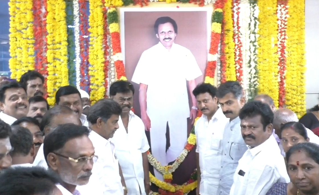 மறைந்த முன்னாள் சட்டமன்ற உறுப்பினரும், அமைச்சர் அன்பில்மகேஷ் பொய்யாமொழியின் தகப்பனார் பொய்யாமொழியின் 25வது நினைவு நாளையொட்டி இன்று காலை திருச்சி திமுக தெற்கு மாவட்ட அலுவலகத்தில் வைக்கப்பட்டிருந்த படத்திற்கு அமைச்சர் அன்பில் மகேஷ் பொய்யாமொழி மாலை அணிவித்து மரியாதை செலுத்தினார்.