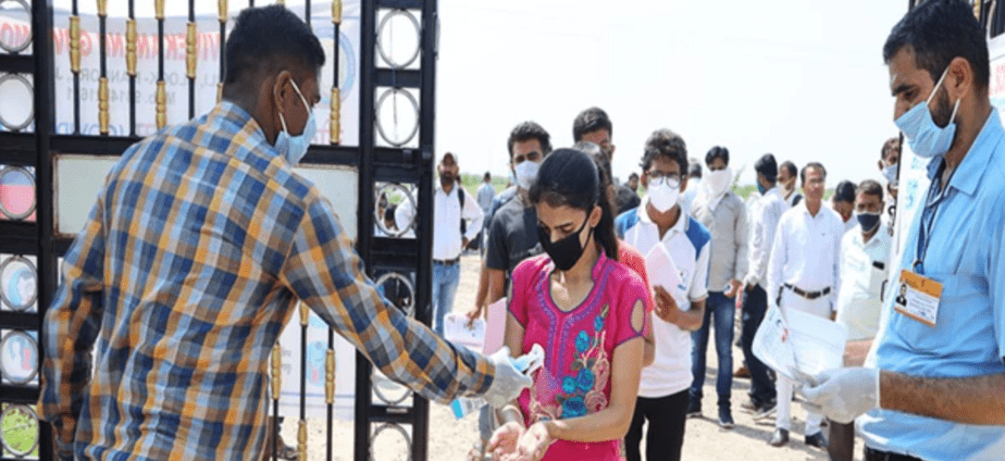 தற்போது கொரோனா தொற்று இருப்பதால், தேர்வர்கள் உடல் வெப்பநிலை பரிசோதிக்கப்பட்ட பின்னரே தேர்வு மையத்துக்குள் அனுமதிக்கப்பட்டனர். அங்கேயே அவர்களுக்கு முகக்கவசமும் வழங்கப்பட்டது.
