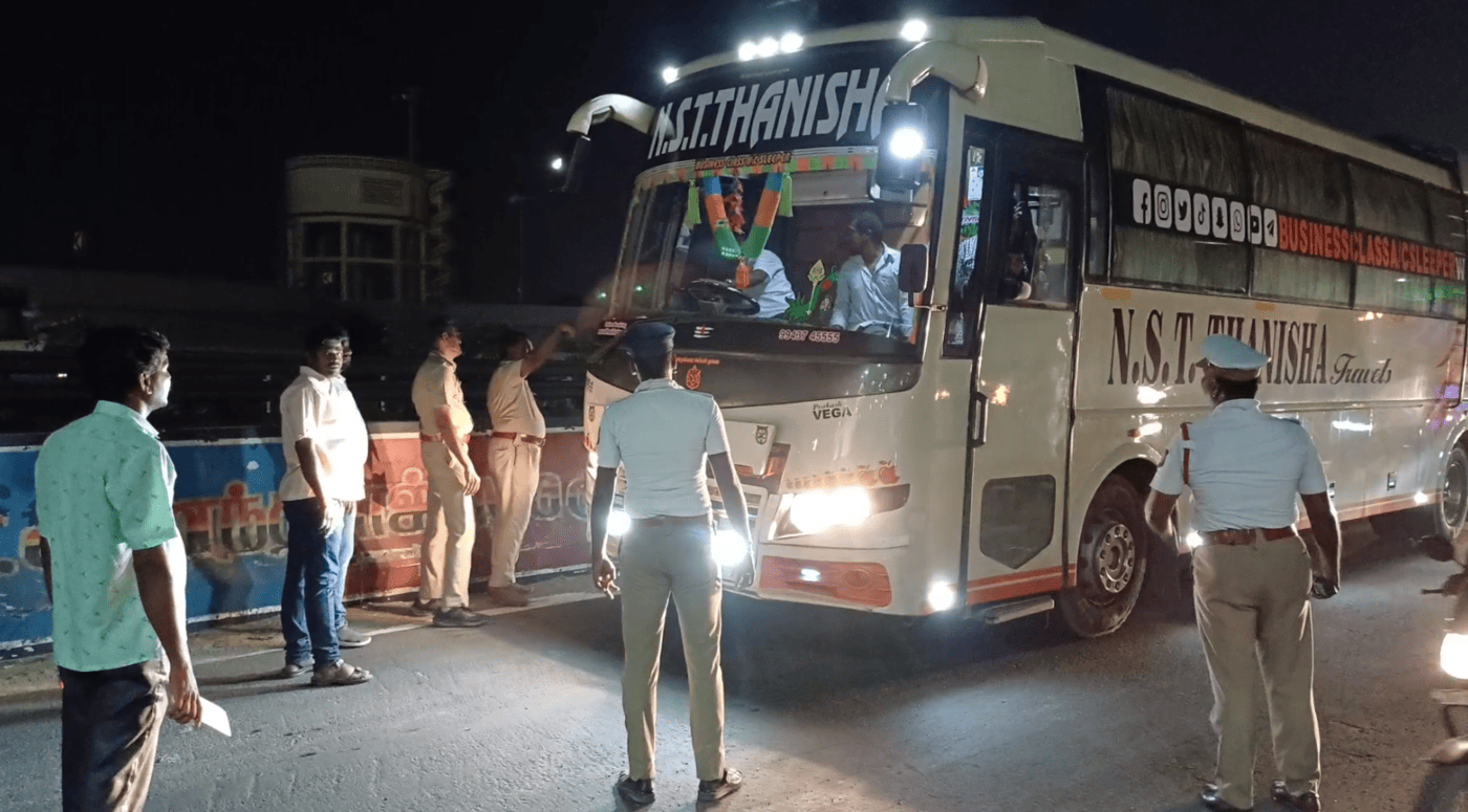 இந்நிலையில் போக்குவரத்து துறை ஆணையரின் உத்தரவின் பேரில், ஏராளமான மோட்டார் வாகன ஆய்வாளர்கள் காவல்துறையினருடன் இணைந்து கிளாம்பாக்கம் பேருந்து நிலையத்தில் உள்ளே செல்லாமல் சென்ற ஆம்னி பேருந்துகளை மடக்கி பிடித்து அபராதம் விதித்து வருகின்றனர்.