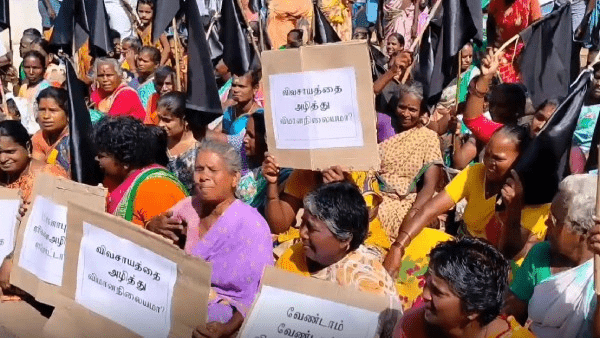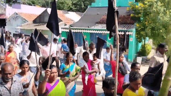 விமான நிலையம் அமைக்க எதிர்ப்பு… கருப்புக் கொடி ஏந்தி கண்ணீருடன் போராட்டத்தில் ஈடுபட்ட கிராமமக்கள் : பரபரக்கும் பரந்தூர்!!