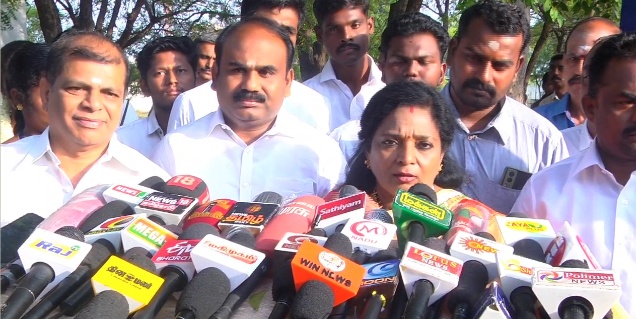 நாகர்கோவிலில் பல்வேறு நிகழ்ச்சிகளில் கலந்து கொள்வதற்காக தெலுங்கானா ஆளுநரும், புதுச்சேரி துணை நிலை ஆளுநருமான தமிழிசை செளந்தரராஜன் காலை தூத்துக்குடி விமான நிலையம் வந்தார். போலீசார் மரியாதையை ஏற்று கொண்ட அவர் பின்னர், செய்தியாளர்களை சந்தித்தார்.