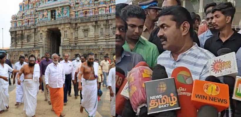 எளிய மக்கள் வழிபடும் கோவில் என்பதால் திரௌபதி அம்மன் கோவிலை பூட்டினார்கள் என்றும், பிரச்சனை முடியும் வரை சிதம்பரம் நடராஜர் கோவிலை பூட்ட முடியுமா…? என்று நாம் தமிழர் கட்சி ஒருங்கிணைப்பாளர் சீமான் தெரிவித்துள்ளார்.