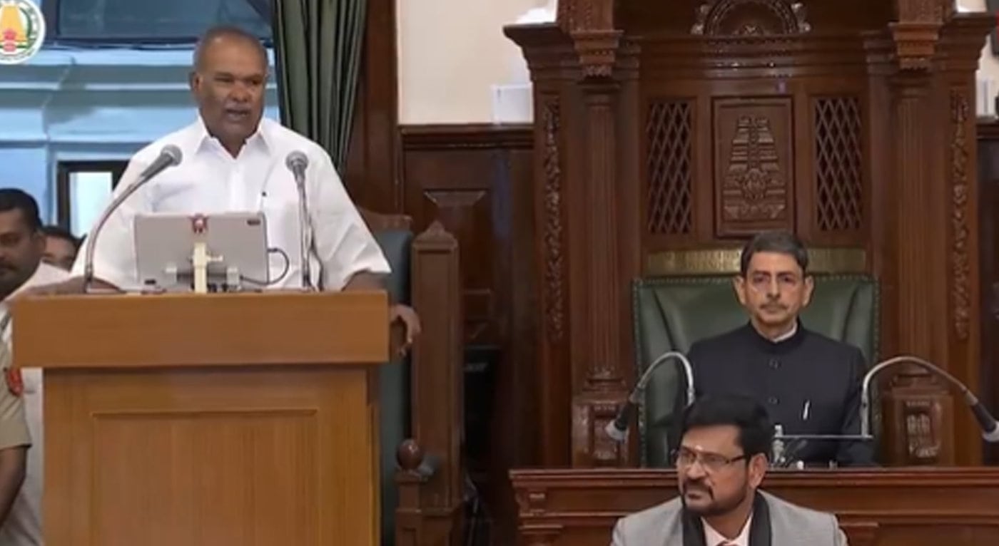 பின்னர், உரை நிகழ்த்திய ஆளுநர் அர்என் ரவி, தமக்கு அளிக்கப்பட்டுள்ள உரையில் உள்ள கருத்துக்களுடன் முரண்படுவதாகக் கூறி உரையை படிக்க மறுத்தார். இதைத் தொடர்ந்து, ஆளுநர் படிக்காத பகுதிகளை சபாநாயகர் அப்பாவு படிக்கத் தொடங்கினார்.