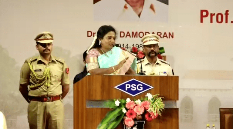 கோவை பிஎஸ்ஜி கலை மற்றும் அறிவியல் கல்லூரியில் ஊழியர்கள் தின விழா நிகழ்ச்சி இன்று கொண்டாடப்பட்டது. இதில் புதுச்சேரி மற்றும் தெலுங்கானா ஆளுநர் தமிழிசை சௌந்தரராஜன் சிறப்பு விருந்தினராக கலந்து கொண்டார் சிறப்புரையாற்றினார்.
