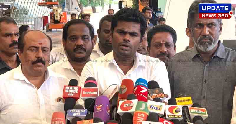 சென்னையிலிருந்து விமானம் மூலம் கோவை வந்த பாஜகவின் மாநில தலைவர் அண்ணாமலை செய்தியாளர்களை சந்தித்தார்.
