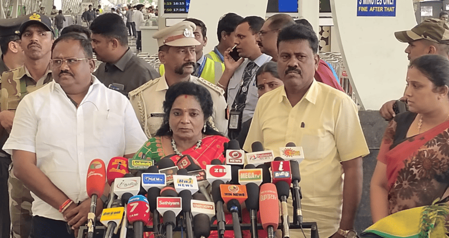 யார் அப்பன் வீட்டு சொத்தை கேட்குறார் உதயநிதி ஸ்டாலின் என்றும், அவரு தாத்தா, அப்பா, கொண்டு வந்த சொத்தா..?? என தெலங்கானா ஆளுநர் தமிழிசை செளந்திரராஜன் காட்டமாக பதிலடி கொடுத்துள்ளார்.