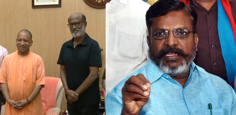 உத்தரபிரதேசம் முதலமைச்சர் காலில் ரஜினிகாந்த் விழுந்த சம்பவம் பூனை குட்டி வெளியே வந்து விட்டதை காட்டுவதாக விசிக தலைவர் தொல் திருமாவளவன் தெரிவித்துள்ளார்.