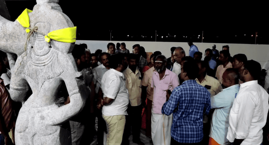 இந்நிலையில், விருதுநகர் தாசில்தார் மற்றும் கோட்டாச்சியர் சிவக்குமார் ஆகியோர் தலைமையில் வருவாய்த்துறையினர் காவல்துறையினருடன் வந்து அனுமதி பெறாமல் சிலை வைத்துள்ளீர்கள். எனவே, உடனடியாக இதை அகற்ற வேண்டும் என்றனர். இதை கேட்டதும் சிலையை அகற்ற முடியாது, எங்கள் பட்டா நிலத்தில் தான் உள்ளது என பாஜக வினர் வாக்குவாத்ததில் ஈடுபட்டனர். இந்நிலையில், பாஜக மாநில செயலாளரும், கன்னியாகுமரி பெருங்கோட்ட பொறுப்பாளருமான பொன் பாலகணபதி நிகழ்விடத்திற்கு வந்து அதிகாரிகளுடன் பேச்சுவார்த்தை நடத்தினார்.