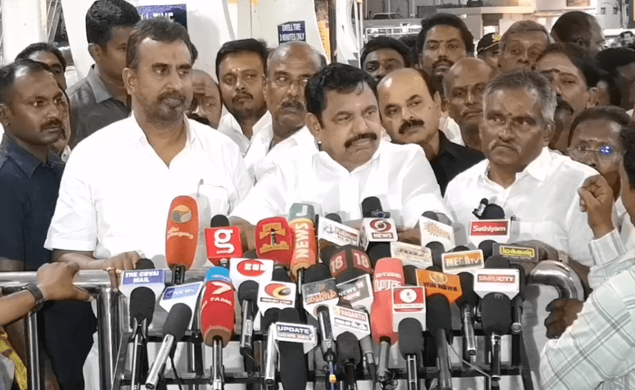 கோவை விமான நிலையத்தில் எதிர்க்கட்சித் தலைவர் எடப்பாடி பழனிச்சாமி, செய்தியாளர்களை சந்தித்தார்.